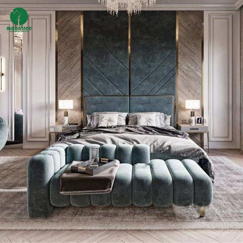 Moontree lujo sala de estar dormitorio muebles moderno terciopelo verde Banco salón Banco otomano para el hogar Hotel